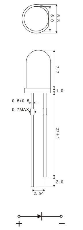 注:強度の耐性 ±15%、波長の極性 ±1nm、前方電圧の極性± テスト時の上記の0.1V。
