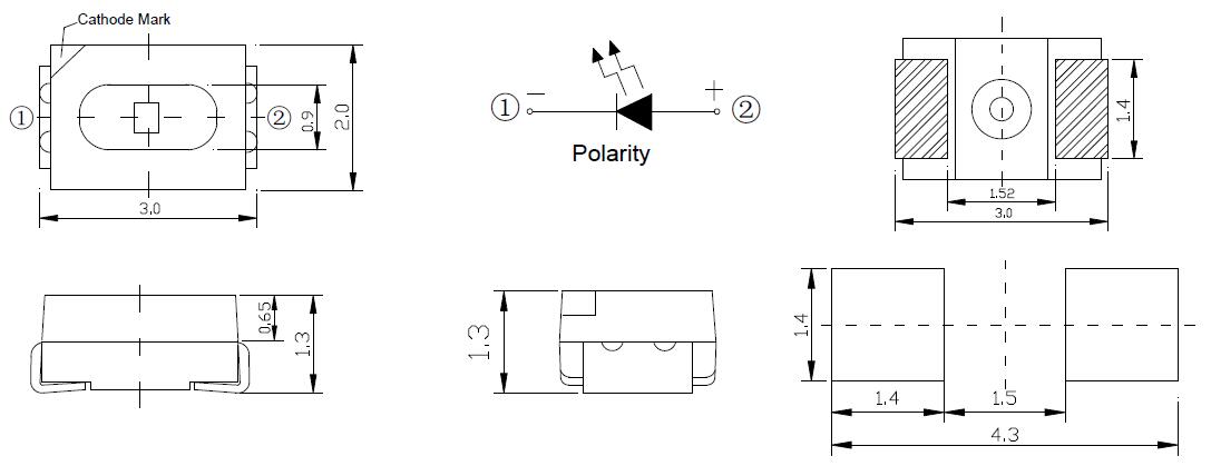暗い 物理的次元/パッケージ(L/w/h):3.0x2.0x1.3mm